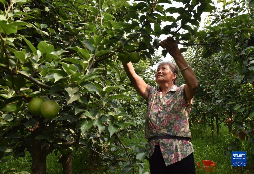 7月27日,河北省威縣張營(yíng)鄉前花疃村果農在梨園采摘梨果。