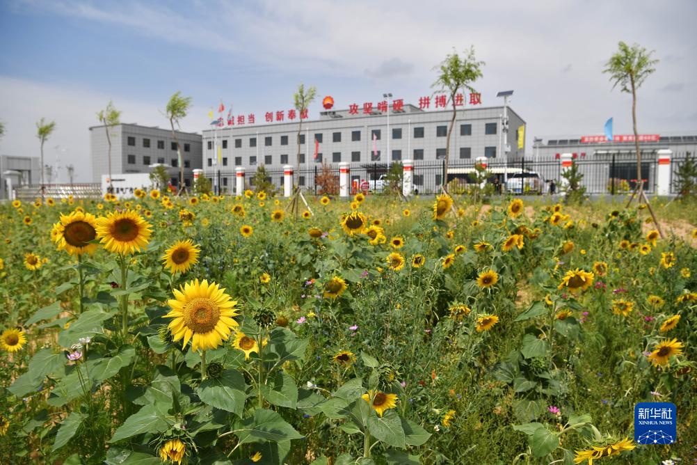 長(cháng)慶油田蘇里格氣田第五采氣廠(chǎng)作業(yè)一區周邊種植的向日葵(7月26日攝)。