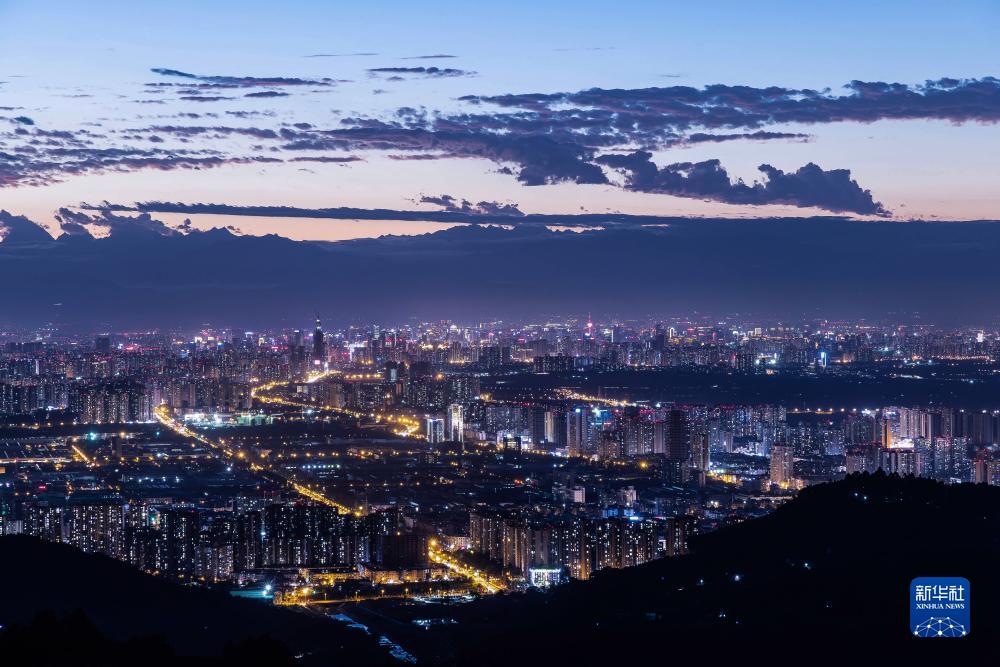 從龍泉山俯瞰成都市夜景(6月24日攝)。