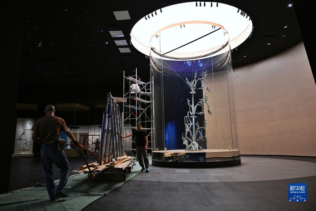 7月26日,工作人員在三星堆博物館新館內布展。