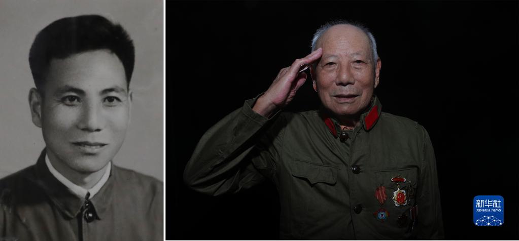 程龍江(拼版照片,2020年9月16日攝),1931年3月出生,1948年參軍,1950年10月入朝作戰,1953年回國。