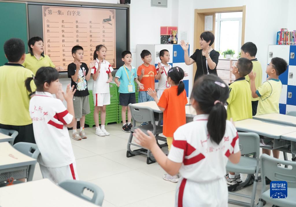 正值暑假,北京市海淀區中關(guān)村學(xué)區組織學(xué)區內的部分小學(xué)承辦2023年中關(guān)村學(xué)區暑期托管服務(wù)工作。來(lái)自學(xué)區內不同小學(xué)的學(xué)生們在托管班中參與益智游戲、體育鍛煉等活動(dòng),度過(guò)愉快而有意義的暑假。