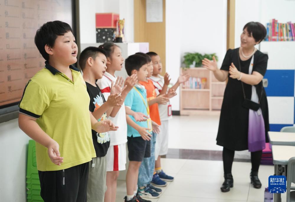 正值暑假,北京市海淀區中關(guān)村學(xué)區組織學(xué)區內的部分小學(xué)承辦2023年中關(guān)村學(xué)區暑期托管服務(wù)工作。來(lái)自學(xué)區內不同小學(xué)的學(xué)生們在托管班中參與益智游戲、體育鍛煉等活動(dòng),度過(guò)愉快而有意義的暑假。