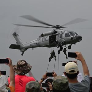 7月27日,在空軍航空開(kāi)放活動(dòng)·長(cháng)春航空展首個(gè)公眾日,一名男孩向人民空軍敬禮。