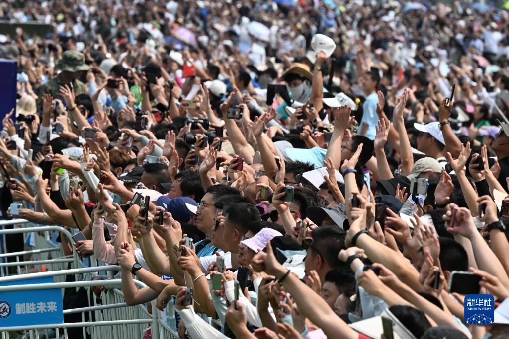 7月27日,在空軍航空開(kāi)放活動(dòng)·長(cháng)春航空展首個(gè)公眾日,觀(guān)眾向表演歸來(lái)的飛機揮手致意。