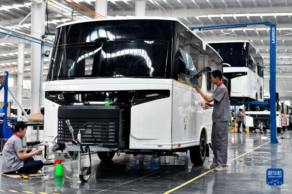 7月27日,在位于莒縣的大馳智能房車(chē)(日照)有限公司,工作人員在裝配房車(chē)。