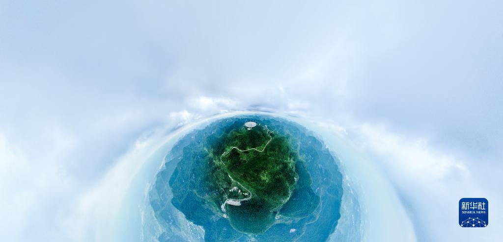 7月26日拍攝的“中國天眼”全景(維護保養期間無(wú)人機拍攝)。