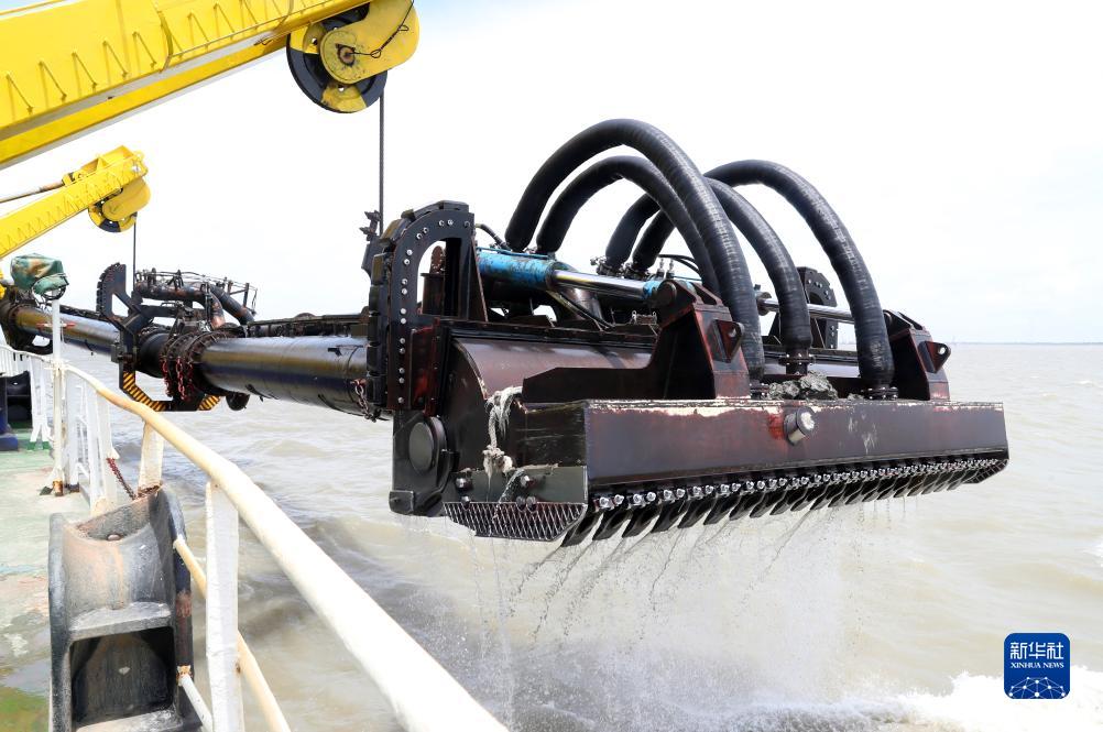 7月26日拍攝的起耙中的“新海鳳”輪右舷耙頭。