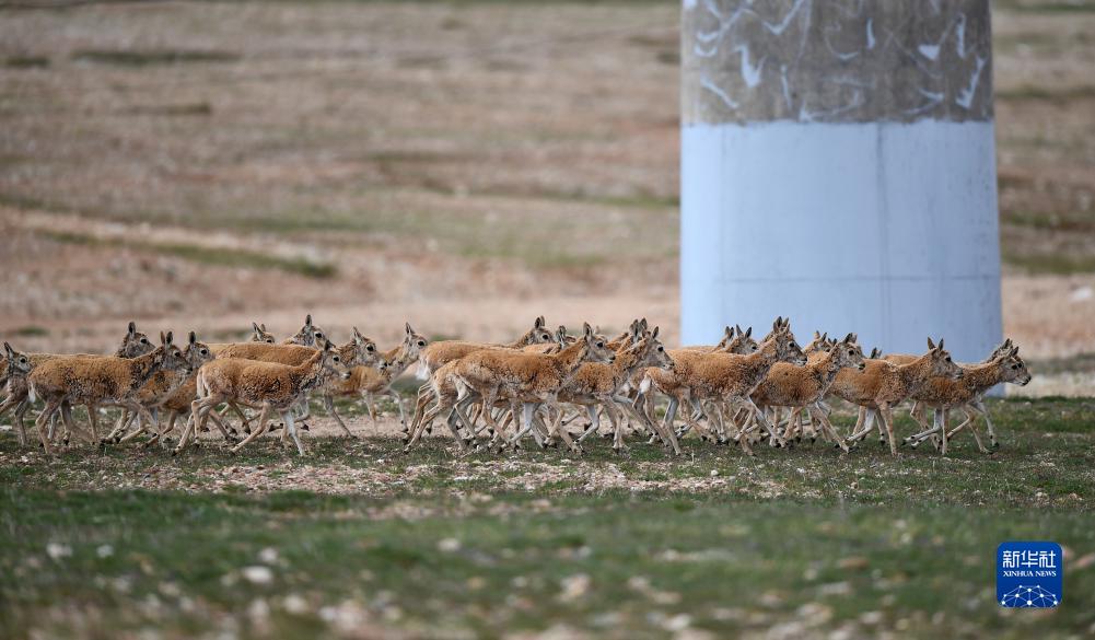 7月28日,一群藏羚羊準備通過(guò)青藏鐵路五北大橋。