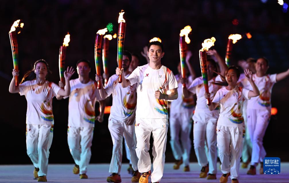 當晚,第31屆世界大學(xué)生夏季運動(dòng)會(huì )開(kāi)幕式在成都東安湖體育公園主體育場(chǎng)舉行。