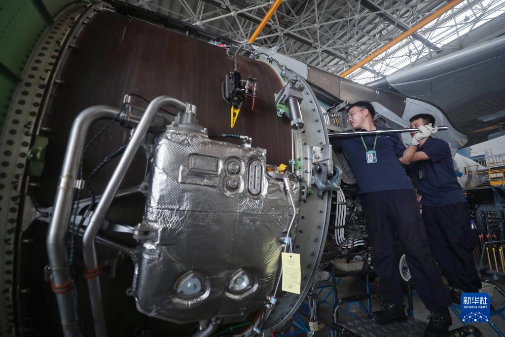 7月28日,工作人員在南航工程技術(shù)分公司沈陽(yáng)基地3號機庫進(jìn)行飛機維護。
