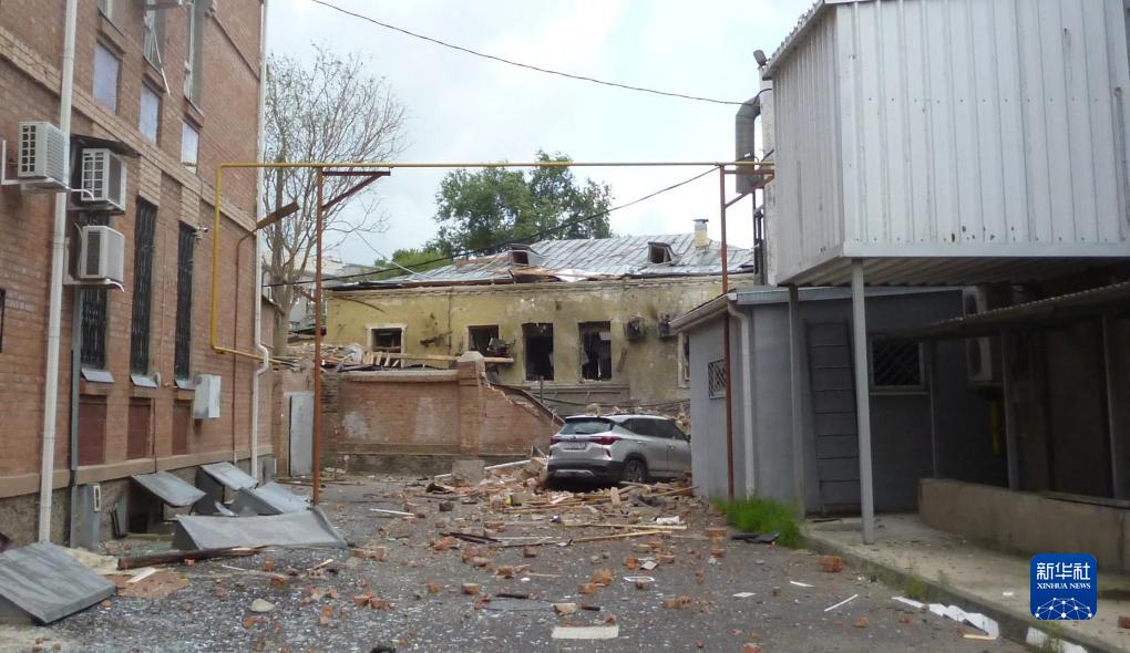 這是7月28日在俄羅斯羅斯托夫州塔甘羅格市拍攝的受損建筑(視頻截圖)。