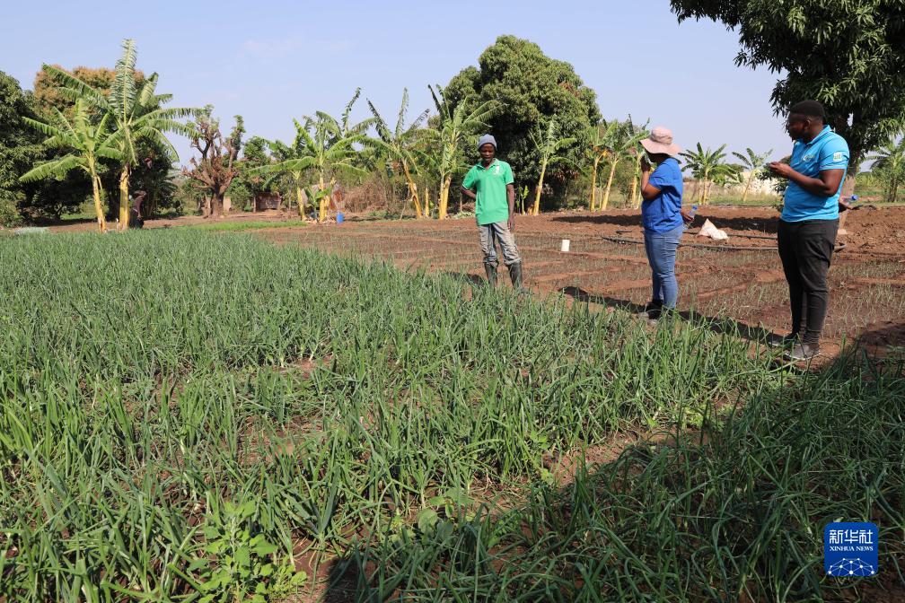 7月28日,在莫桑比克馬普托省博阿內地區,兩名中莫農業(yè)技術(shù)示范中心技術(shù)員與當地農民(左)交流。