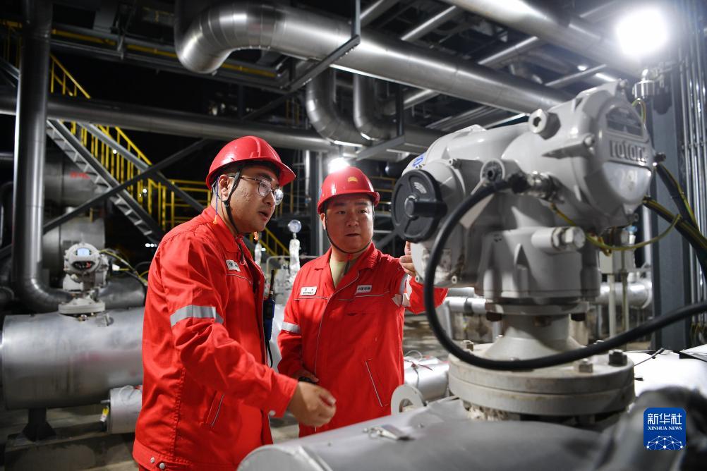 7月27日,夜班工作人員在中國石油長(cháng)慶油田上古天然氣處理總廠(chǎng)巡檢。