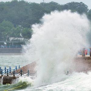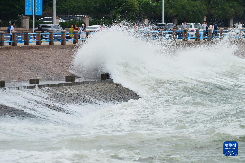 7月29日,在山東省青島市澳門(mén)路,海浪拍向岸邊。