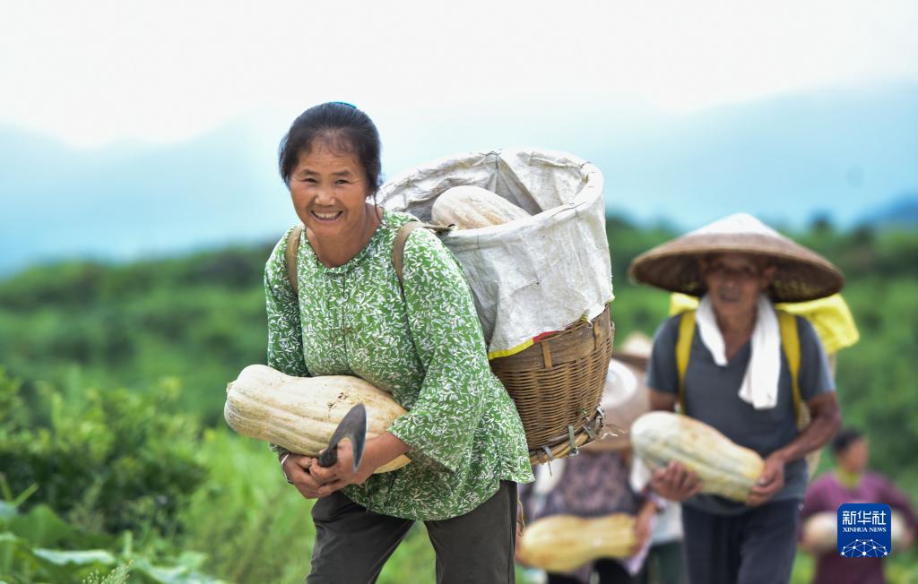 7月29日,農民在貴州省銅仁市松桃苗族自治縣大路鎮和平村采收南瓜。
