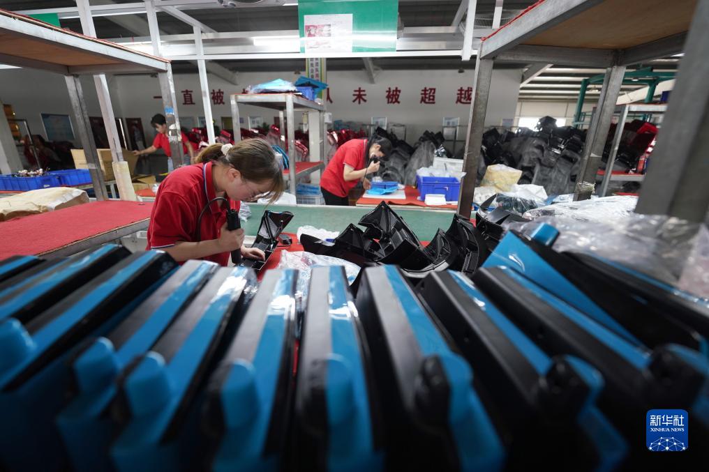7月29日,河北省平鄉縣一家童車(chē)生產(chǎn)企業(yè)的員工在組裝電動(dòng)童車(chē)零部件。