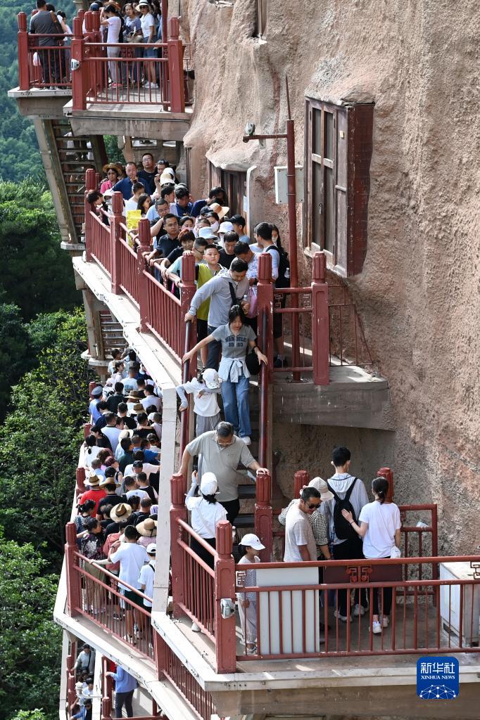 進(jìn)入暑期,地處甘肅省天水市麥積區的麥積山石窟迎來(lái)旅游高峰。為保障游客與文物安全,麥積山石窟藝術(shù)研究所優(yōu)化參觀(guān)路線(xiàn),從7月29日起至8月25日間開(kāi)啟路線(xiàn)陡峭的應急1號線(xiàn)和路線(xiàn)平緩的應急2號線(xiàn)兩條參觀(guān)線(xiàn)路供游客選擇,以此提升游客體驗。麥積山石窟是“中國四大石窟”之一,因其形似麥垛而得名,也是世界文化遺產(chǎn)“絲綢之路:長(cháng)安-天山廊道的路網(wǎng)”的遺產(chǎn)點(diǎn)之一。