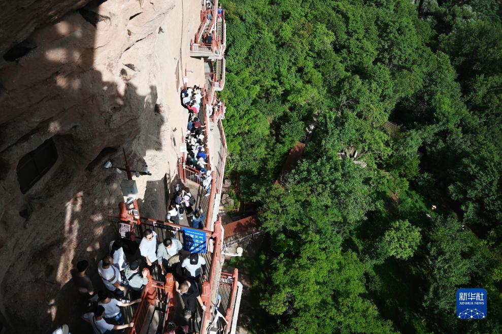 7月30日,游客在麥積山石窟參觀(guān)游覽。