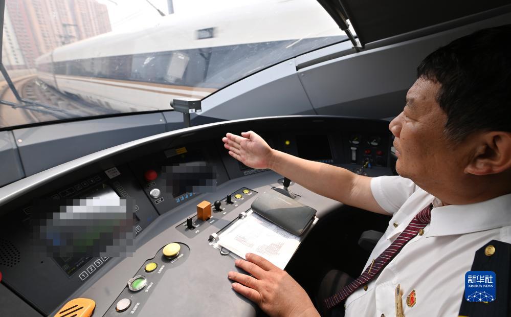 徐偉在駕駛京津城際列車(chē)(7月26日攝)。