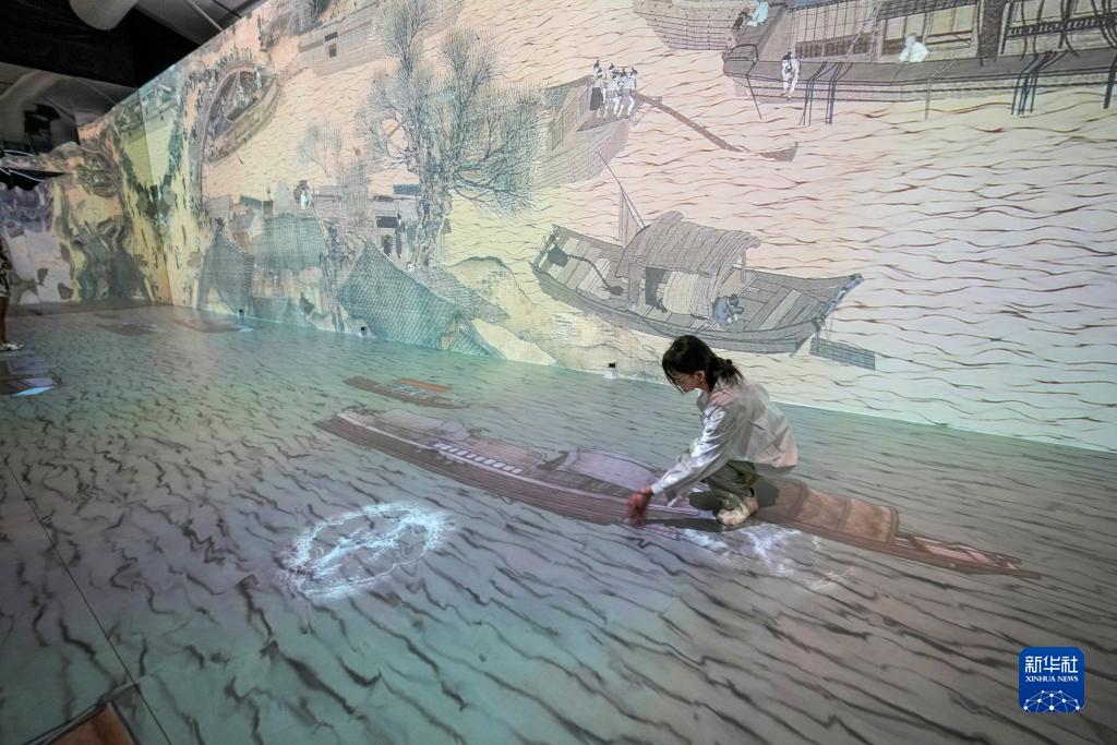 7月31日,游客在“盛世長(cháng)卷”動(dòng)態(tài)高清巨幕展區內近距離感受古代名畫(huà)《清明上河圖》。