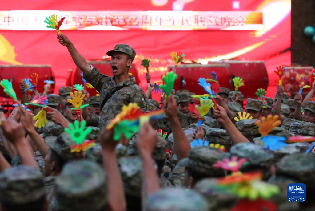 在陸軍第75集團軍某旅軍民聯(lián)歡晚會(huì )現場(chǎng),官兵們在拉歌(7月30日攝)。