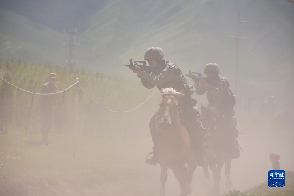 駐守在青藏高原腹地的陸軍第76集團軍某騎兵連展開(kāi)多項實(shí)戰化課目訓練。這是官兵們在乘馬射擊(7月30日攝)。