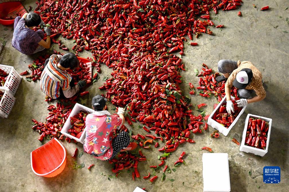近日,安徽省蚌埠市五河縣朱頂鎮陳臺村的3000余畝辣椒迎來(lái)收獲季,村民們忙著(zhù)采摘、搬運、裝車(chē),一派喜人的豐收景象。近年來(lái),安徽省蚌埠市五河縣朱頂鎮積極調整農業(yè)產(chǎn)業(yè)結構,采取“合作社+農戶(hù)+市場(chǎng)”的模式,結合市場(chǎng)需求種植特色辣椒品種,帶動(dòng)當地農民增收致富。