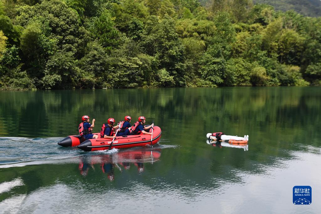 8月2日,浙江省湖州市吳興區道場(chǎng)鄉綜合應急救援隊在水庫開(kāi)展應急救援訓練,模擬救援落水人員。