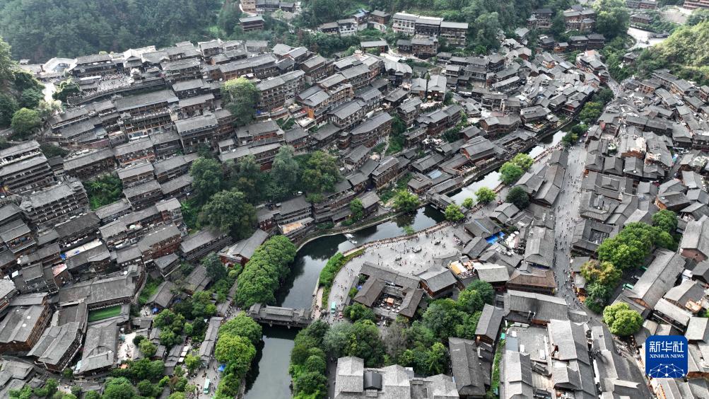這是8月1日拍攝的貴州省黔東南苗族侗族自治州雷山縣西江千戶(hù)苗寨景區(無(wú)人機照片)。