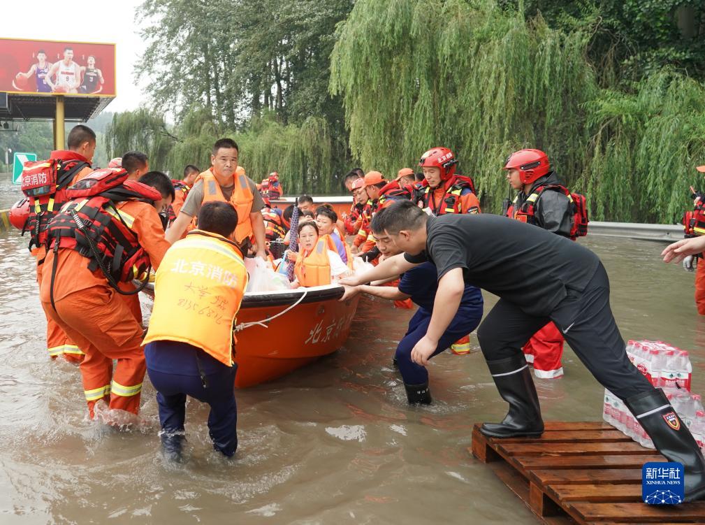 新華全媒+丨北京房山有序轉運暴雨受災人員