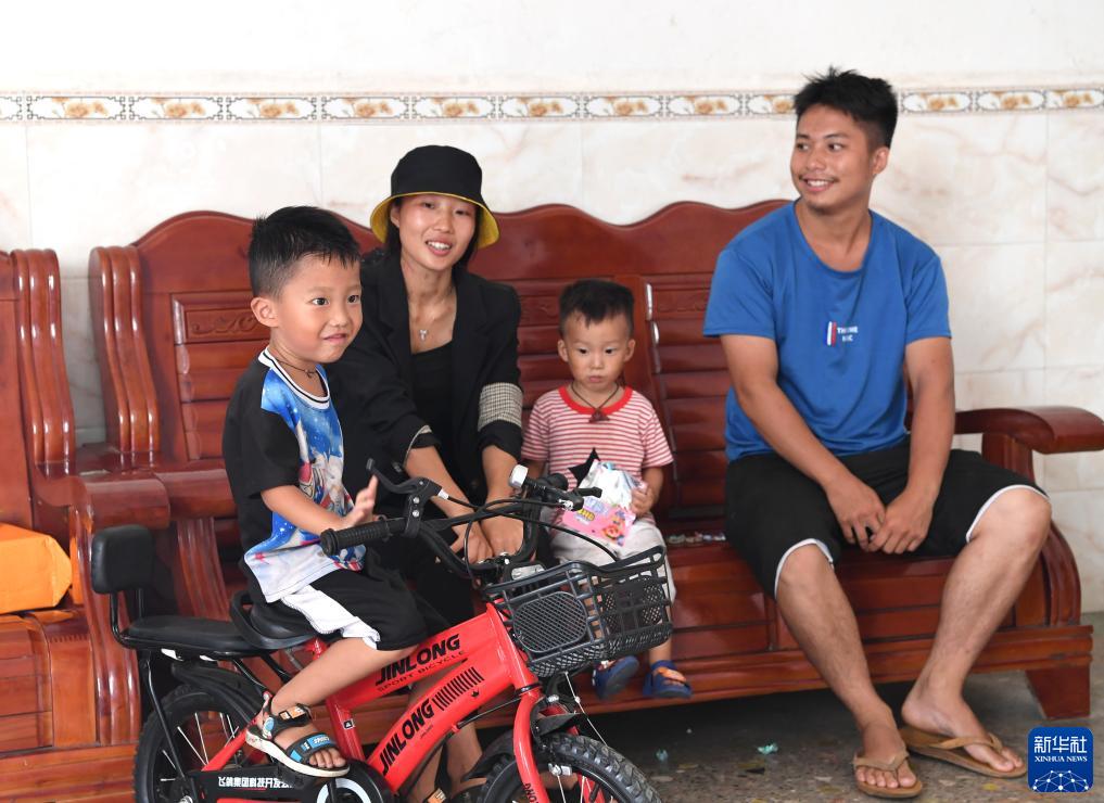 7月31日,吳星海(右一)在那坡縣百南鄉甲柳村上保屯和家人享受休閑時(shí)光。新華社記者周華攝