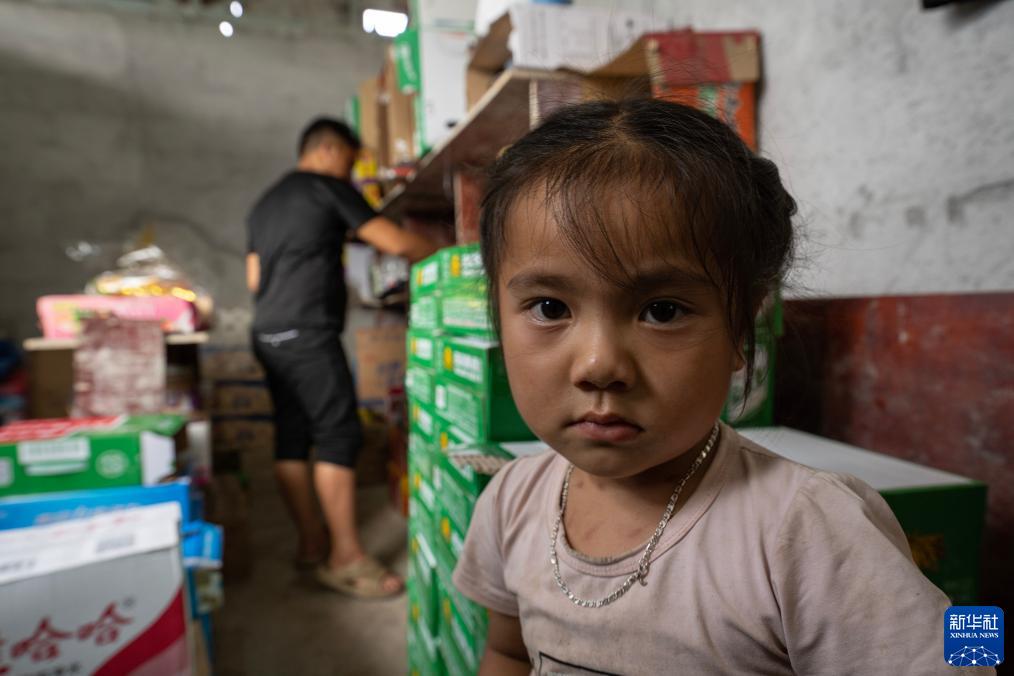 7月31日,吳世榮帶著(zhù)女兒在商店里忙碌。新華社記者費茂華攝
