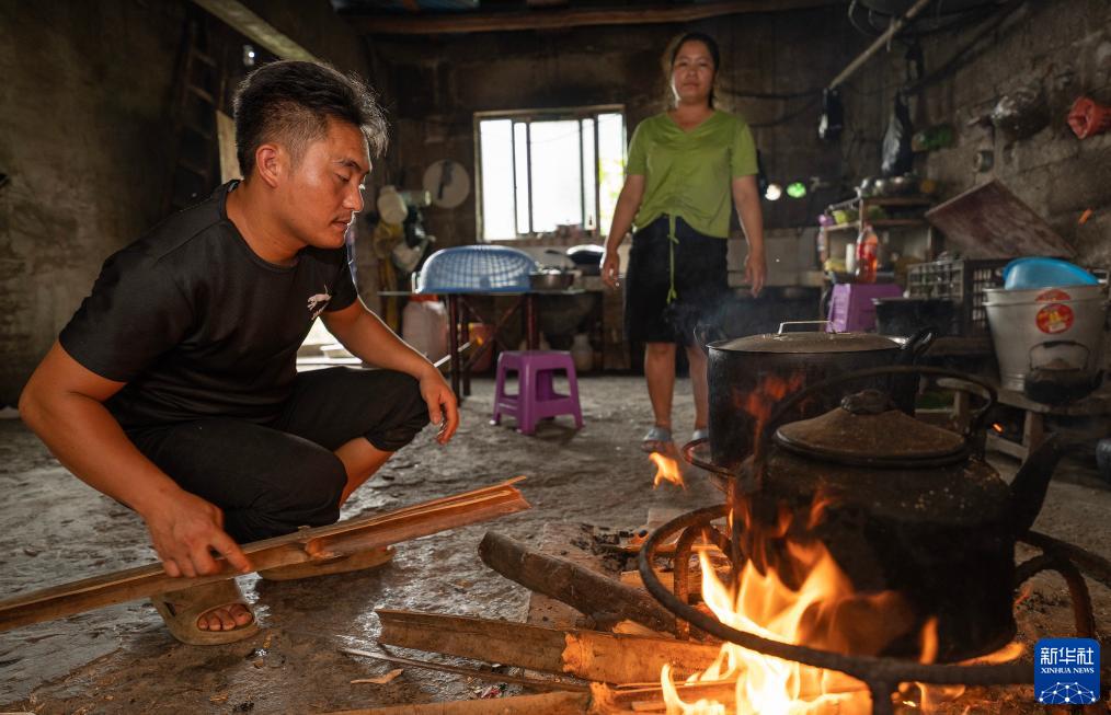 7月31日,吳世榮(左)和妻子在廚房做飯。新華社記者費茂華攝