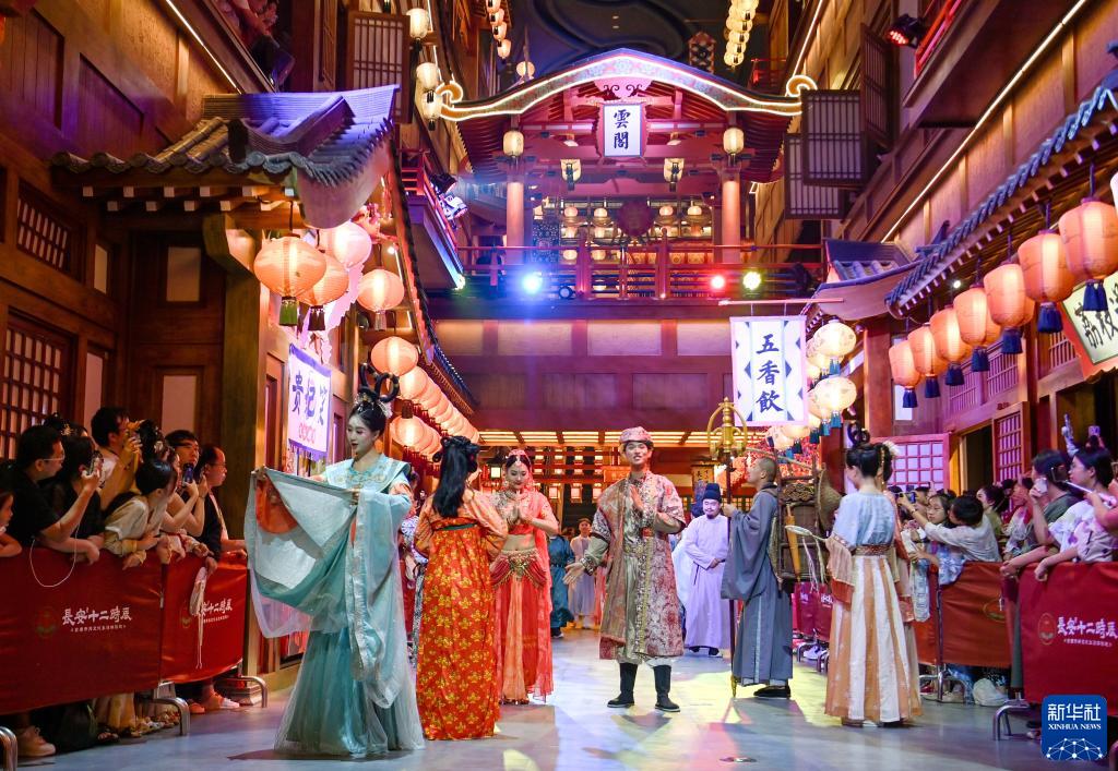 當日,西安長(cháng)安十二時(shí)辰主題街區升級版正式對外開(kāi)放。一系列互動(dòng)式唐風(fēng)演藝打造多個(gè)文化消費新場(chǎng)景,為游客提供深度唐風(fēng)市井文化體驗。今年暑期,以沉浸式體驗、多元業(yè)態(tài)融合為特色的西安文旅市場(chǎng)熱度不減,品類(lèi)多元的唐風(fēng)演藝持續擦亮西安文旅名片,助推文旅融合高質(zhì)量發(fā)展。