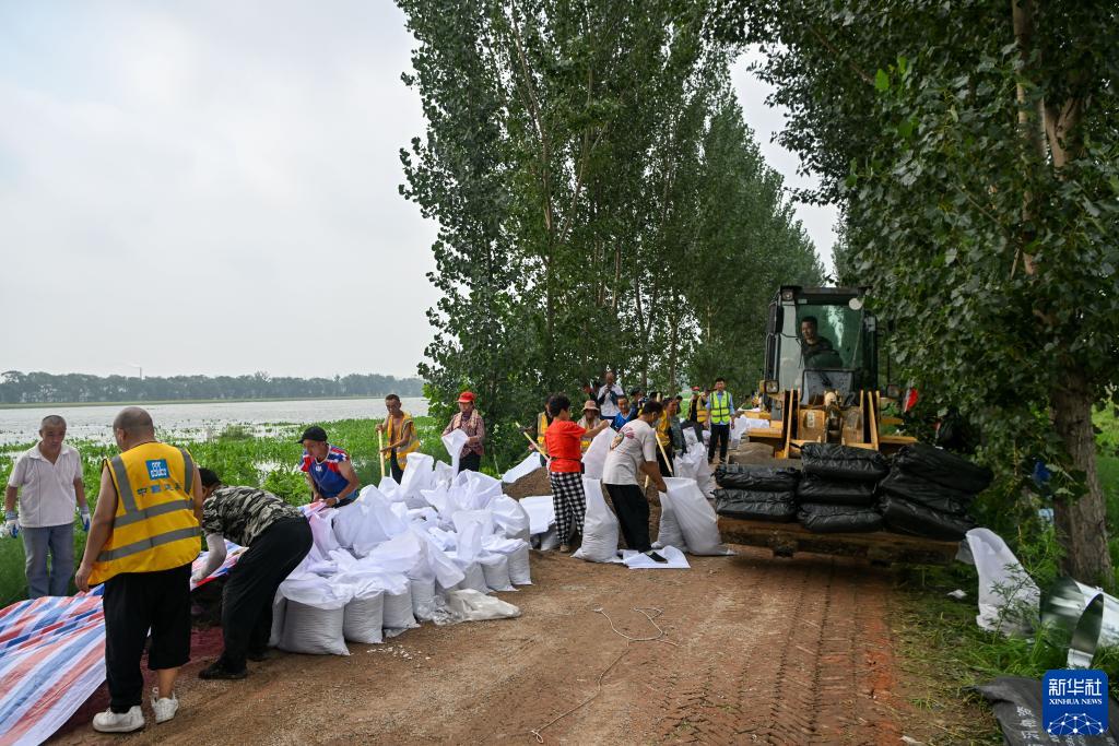 當日,來(lái)自中建、中交等多個(gè)單位的工人和靜海區當地村民共千余人忙碌在大清河天津市靜海段南北兩岸,持續進(jìn)行兩岸堤壩加高加固工作,以應對大清河河道內不斷增長(cháng)的上游來(lái)水。