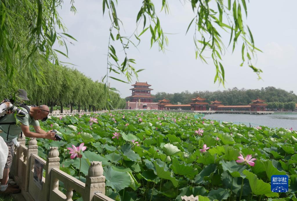 近日,河北省秦皇島市撫寧區南戴河中華荷園的1200多畝荷花相繼綻放,吸引游客前來(lái)賞荷游園。