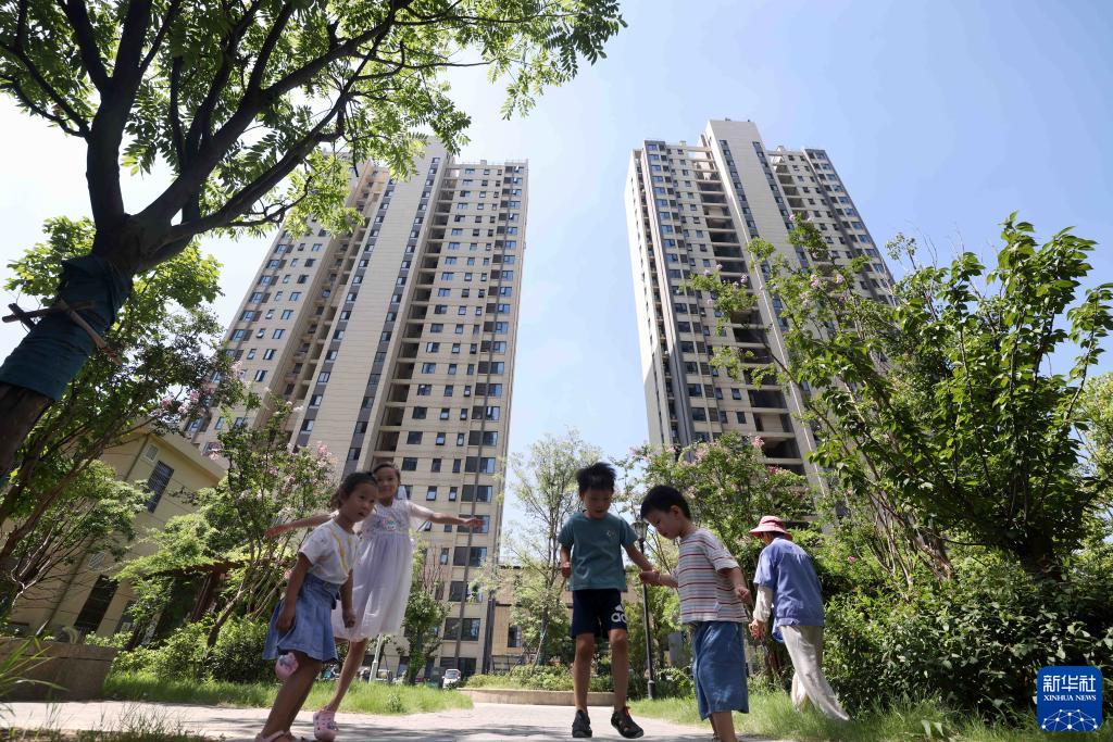 8月3日,在改造后的合肥市瑤海區鐘油坊大郢城中村改造項目,孩子在小區里玩耍。