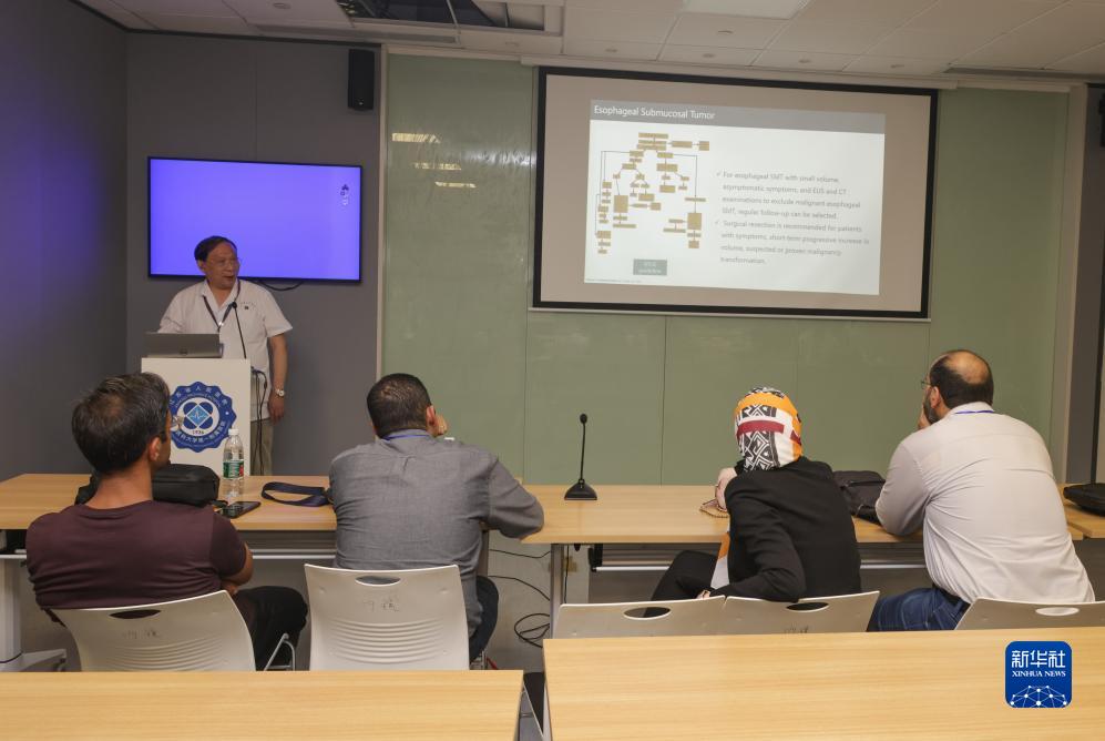 近日,江蘇省人民醫院多了不少“洋面孔”,住院部、實(shí)驗室、內鏡中心……到處可見(jiàn)他們的身影。他們是來(lái)自埃及艾因夏姆斯大學(xué)醫院和坦桑尼亞桑給巴爾基文吉區醫院、查克查克醫院的學(xué)員,前來(lái)參加“30個(gè)中非對口醫院合作機制·非洲醫學(xué)人才(江蘇)研修班”,學(xué)習消化內鏡超級微創(chuàng )技術(shù)、急診急救綜合診療技術(shù)。