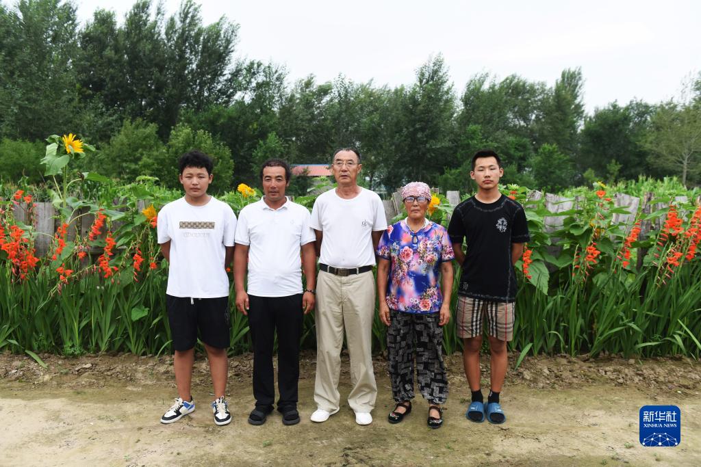 8月2日,百順(左三)和家人合影。
