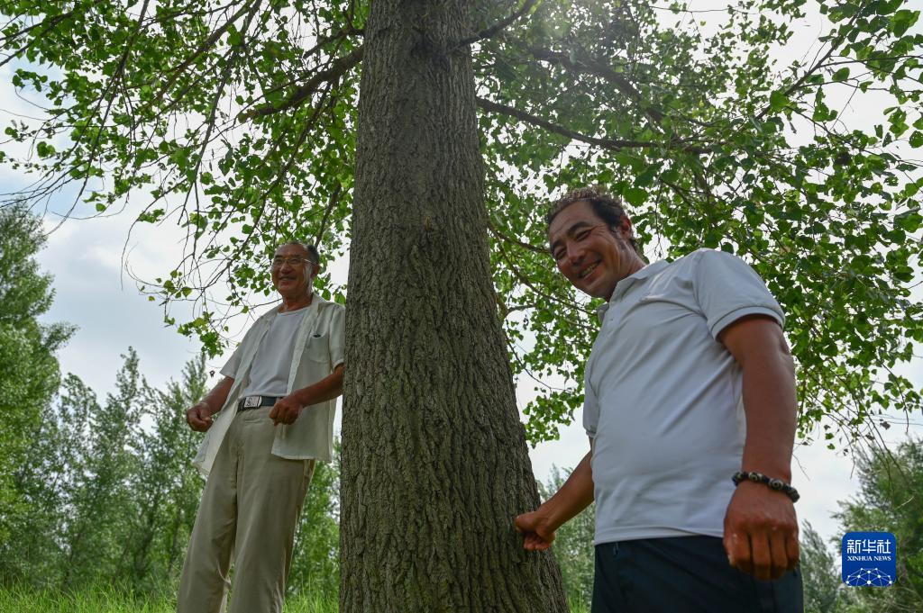 8月2日,百順(左)和三兒子金柱站在他們種的第一棵樹(shù)下。