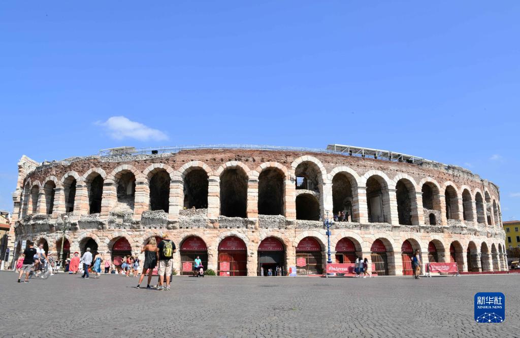 8月2日,游客游覽意大利維羅納圓形競技場(chǎng)。