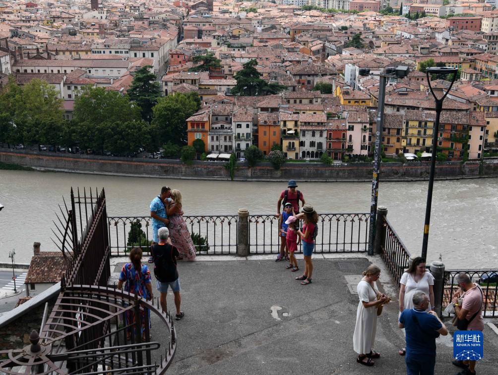 8月3日,游客在意大利維羅納阿迪杰河畔觀(guān)光。