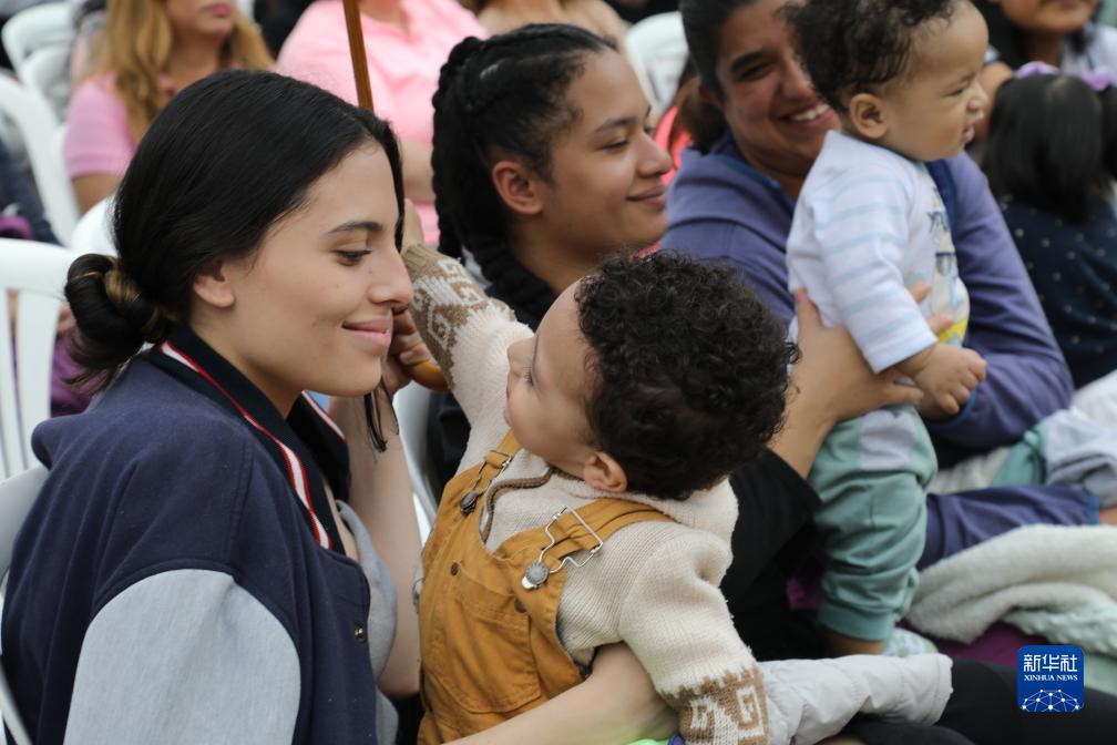 8月3日,在哥倫比亞首都波哥大,母親們帶著(zhù)孩子參加公開(kāi)哺乳活動(dòng)。