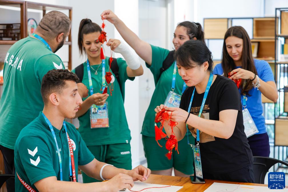 成都大運村里設置了包括皮影、剪紙、刺繡、草編等非遺項目在內的中國文化體驗項目,吸引眾多代表團成員前來(lái)參與。在這里,各代表團成員可以更加切近地感受、了解中國非遺文化的魅力。