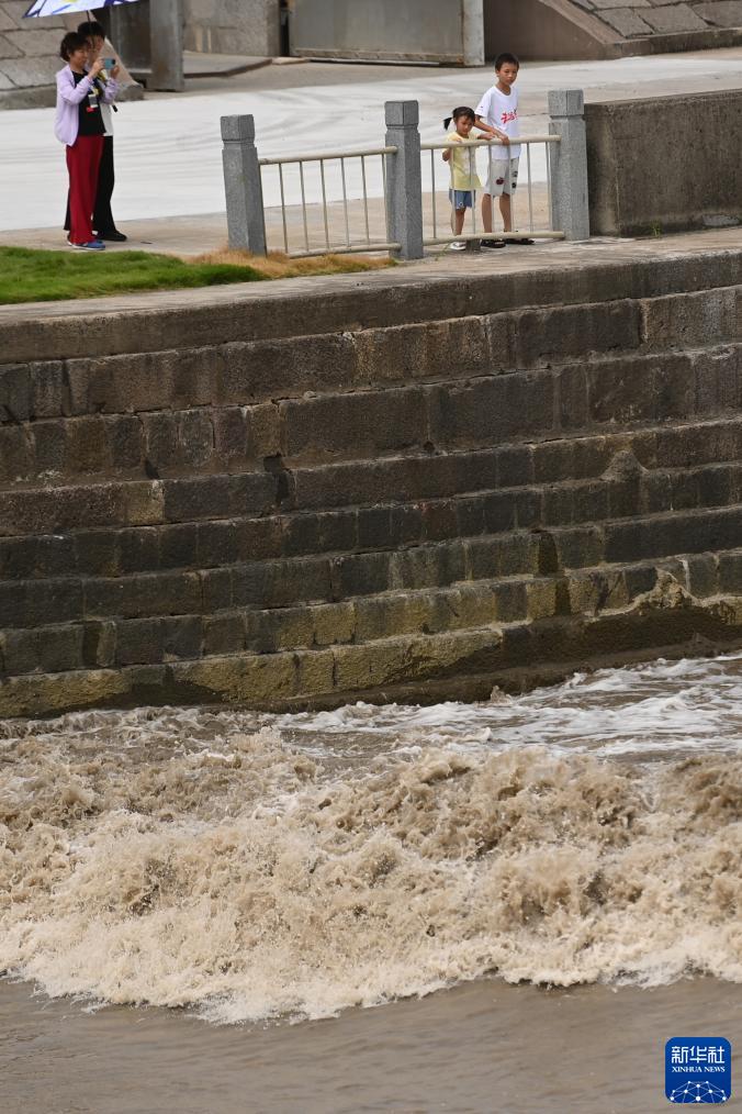 8月4日,人們在浙江海寧市鹽官鎮觀(guān)看錢(qián)塘江大潮。