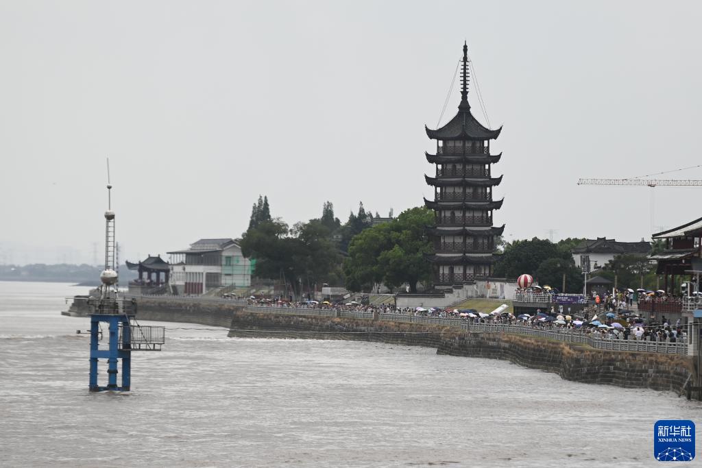 當日是農歷六月十八,號稱(chēng)“天下第一潮”的錢(qián)塘江大潮在海寧鹽官呈現“一線(xiàn)潮”奇觀(guān),吸引眾多游客觀(guān)賞。