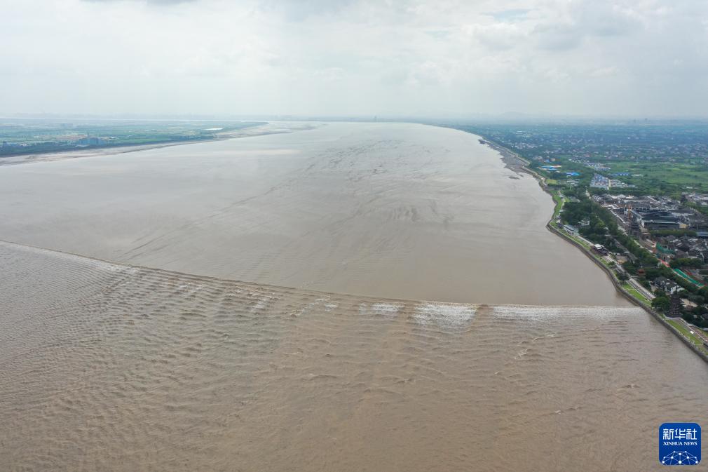 當日是農歷六月十八,號稱(chēng)“天下第一潮”的錢(qián)塘江大潮在海寧鹽官呈現“一線(xiàn)潮”奇觀(guān),吸引眾多游客觀(guān)賞。