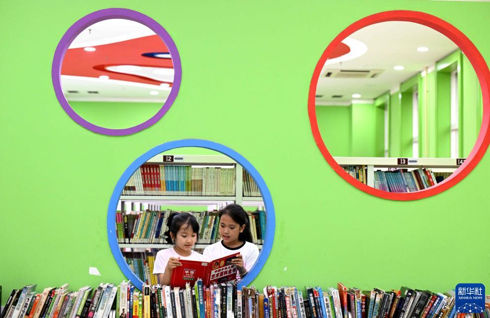 8月4日,小朋友在河北省石家莊市圖書(shū)館閱讀。