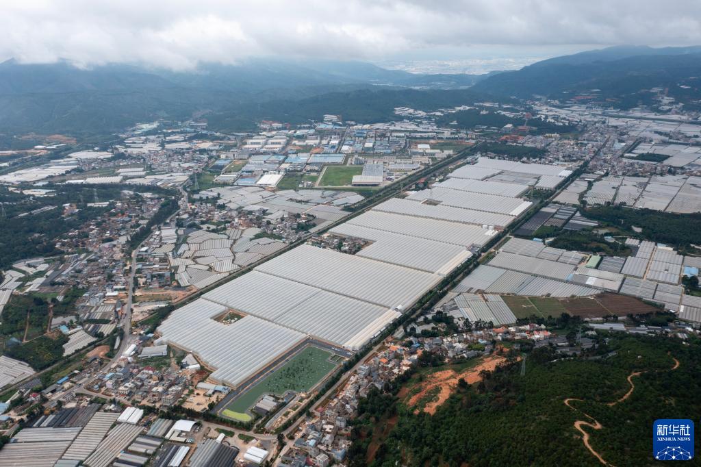 這是7月12日拍攝的云天化晉寧花卉產(chǎn)業(yè)現代化示范園(無(wú)人機照片)。新華社記者 陳欣波 攝